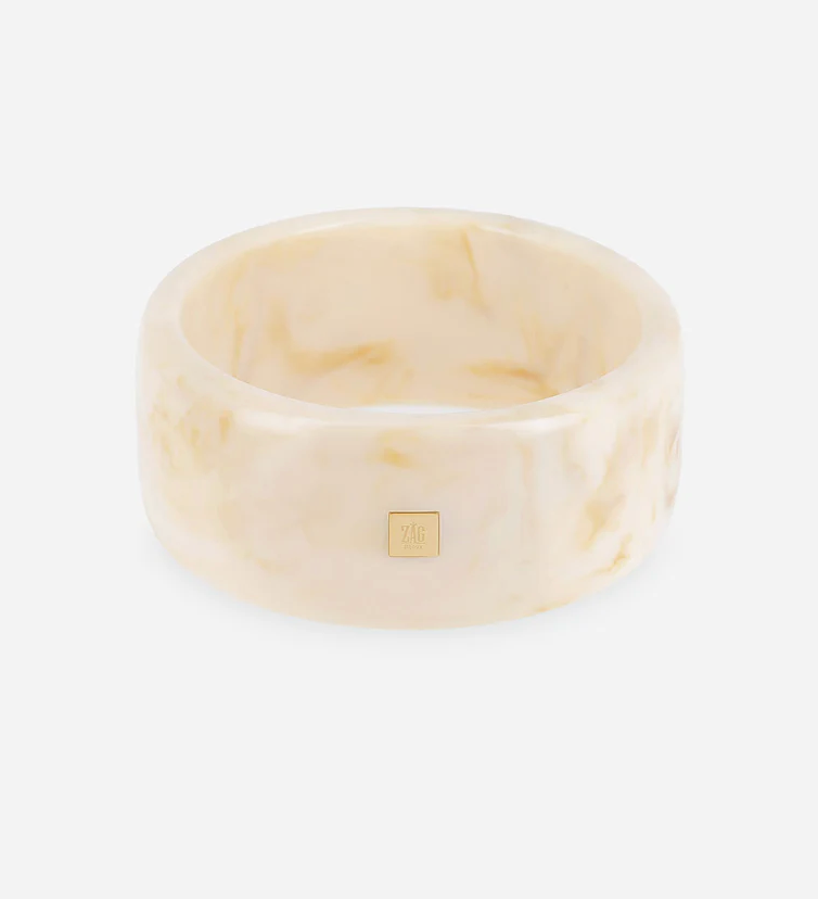 ZAG BIJOUX - Jonc LISBONNE en acier doré - Blanc marbré