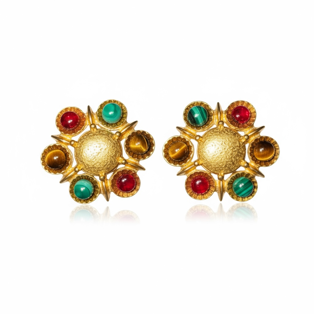 GAS BIJOUX - Boucles d'oreilles AUGUSTA CLIPS dorées à l'or fin - Oeil de tigre, malachite, améthyste