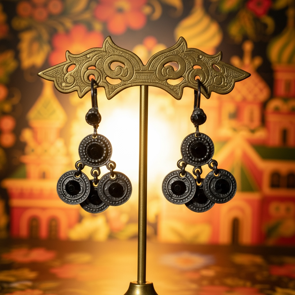 GAS BIJOUX - Boucles d'oreilles ARLEQUIN full noire dorées à l'or fin