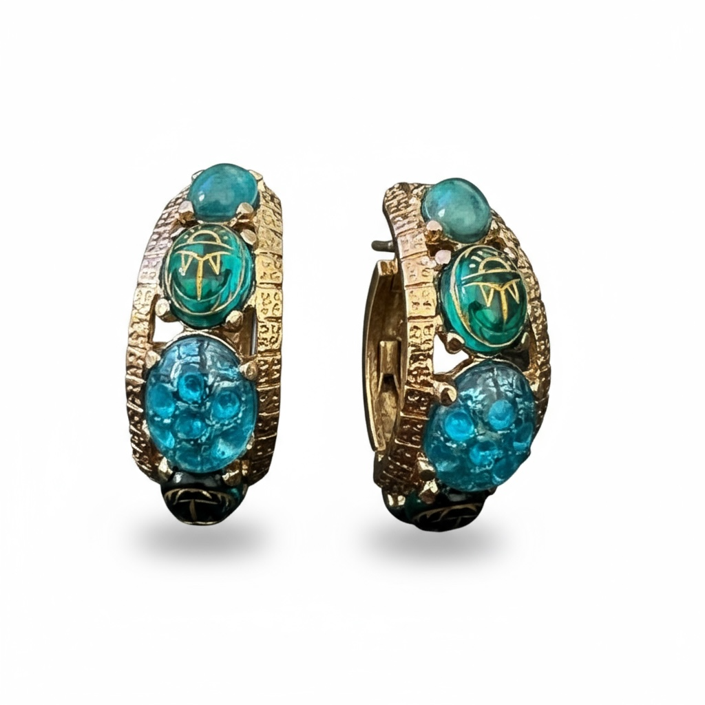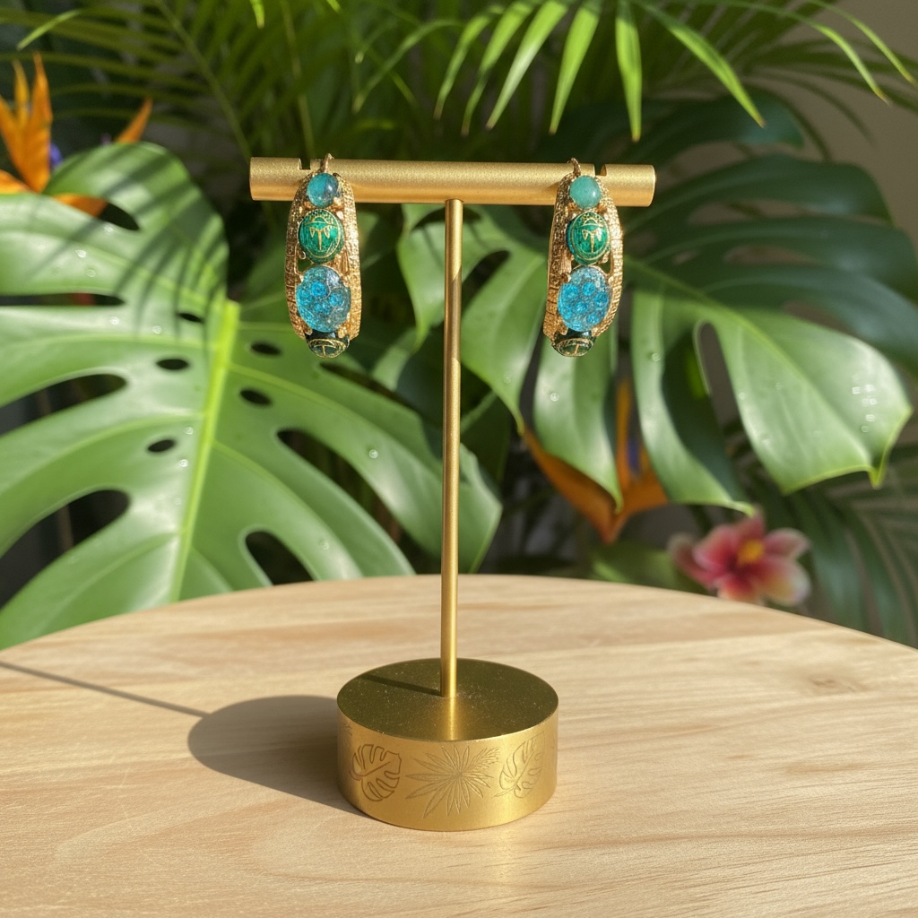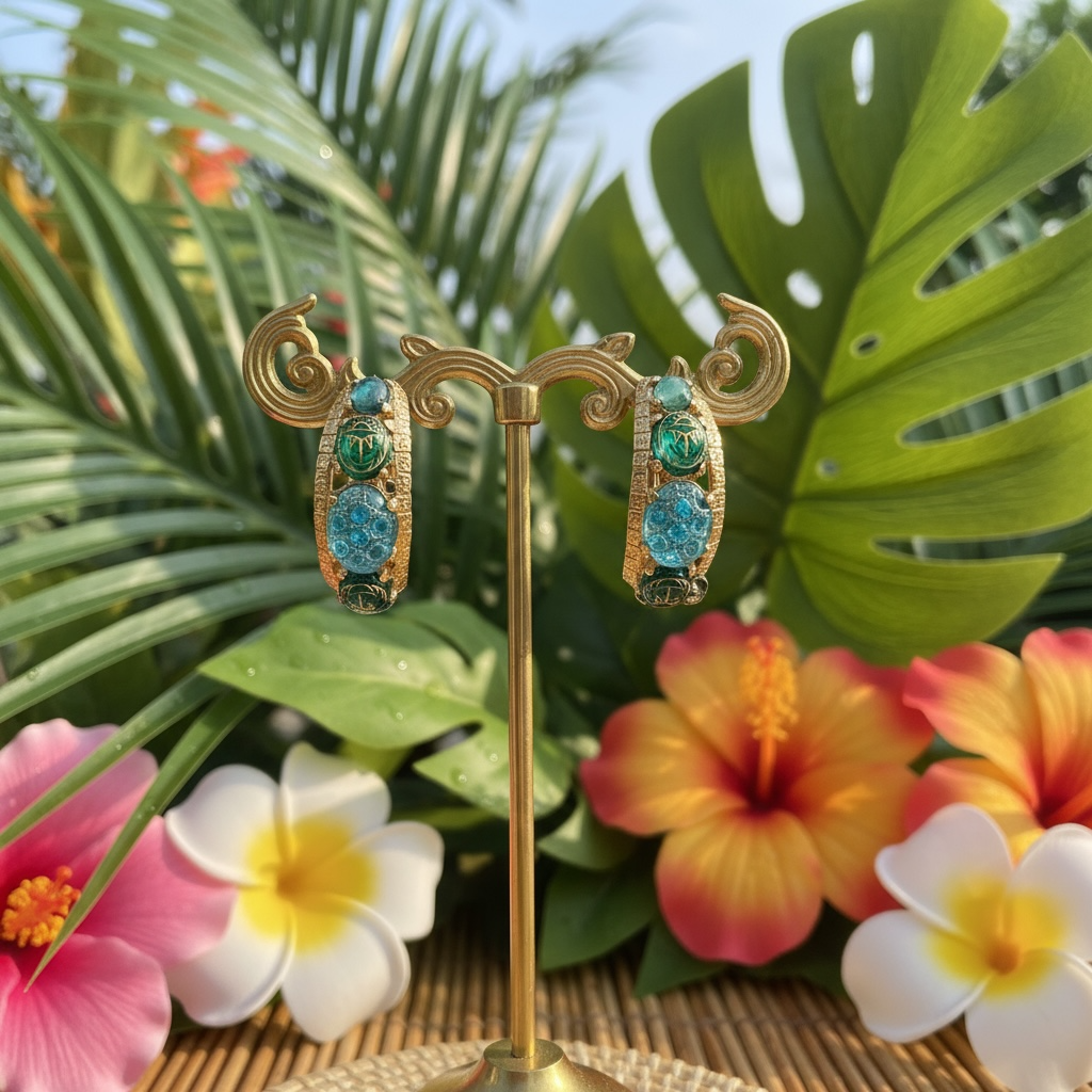 GAS BIJOUX - Boucles d'oreilles OREA cabochons dorées à l'or fin - Bleu et vert