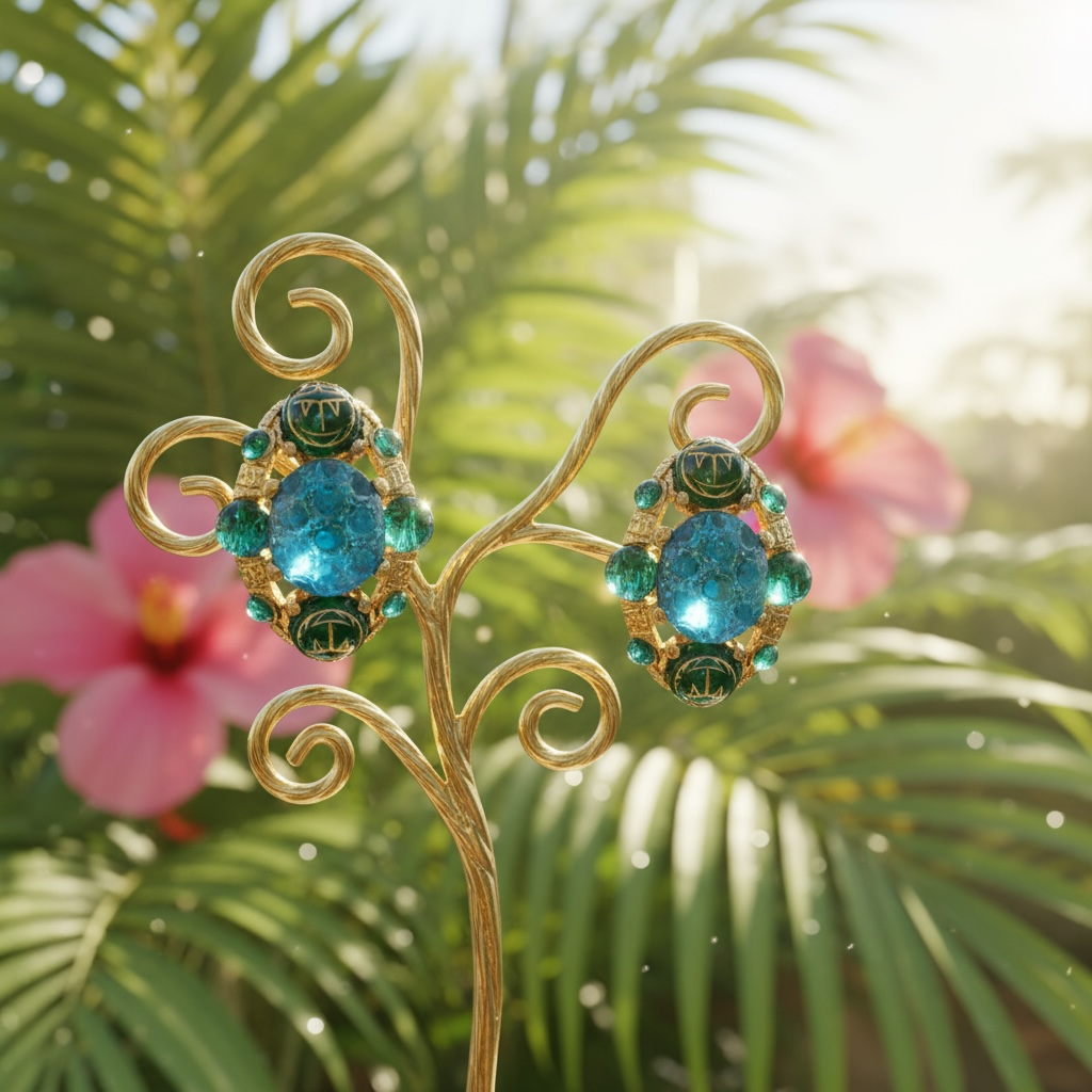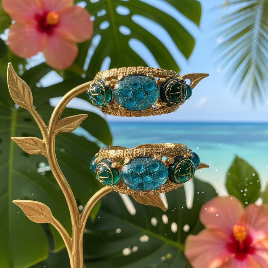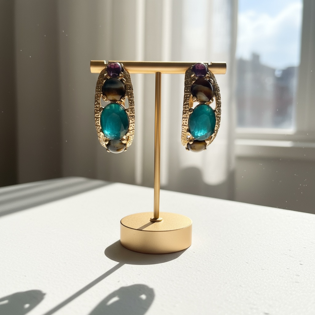 GAS BIJOUX - Boucles d'oreilles OREA cabochons dorées à l'or fin - Bleu et vert