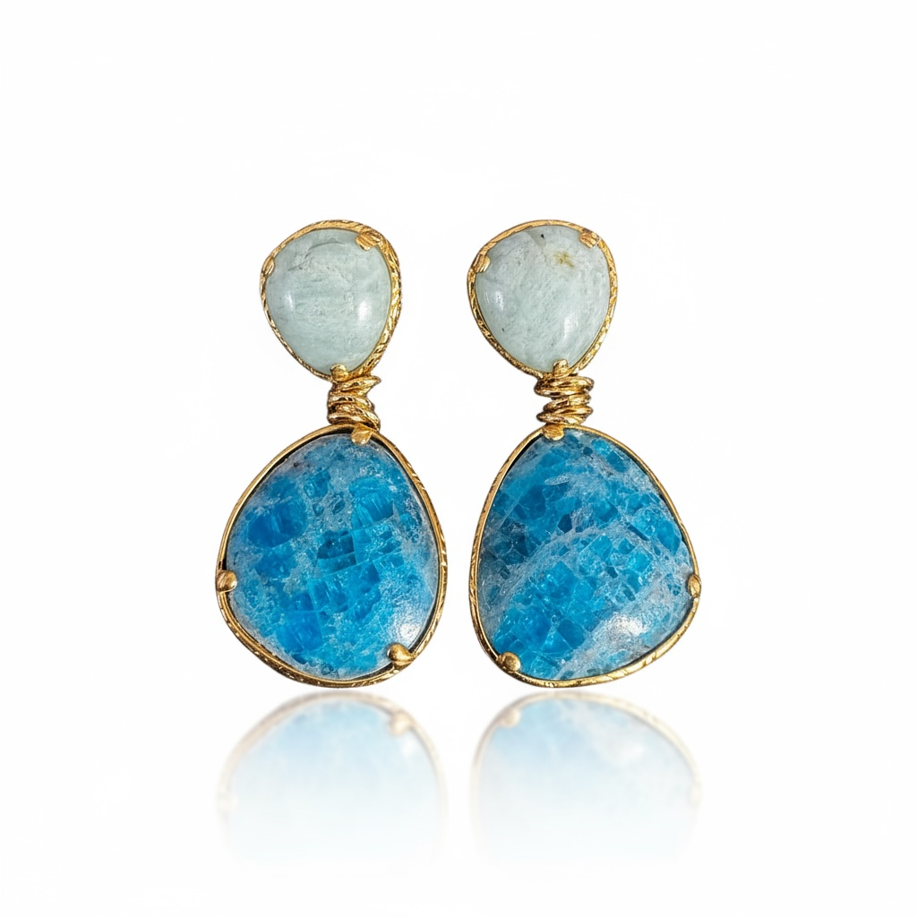 GAS BIJOUX - Boucles d’oreilles TAO SPLASH dorées à l’or fin - Lapis et turquoise