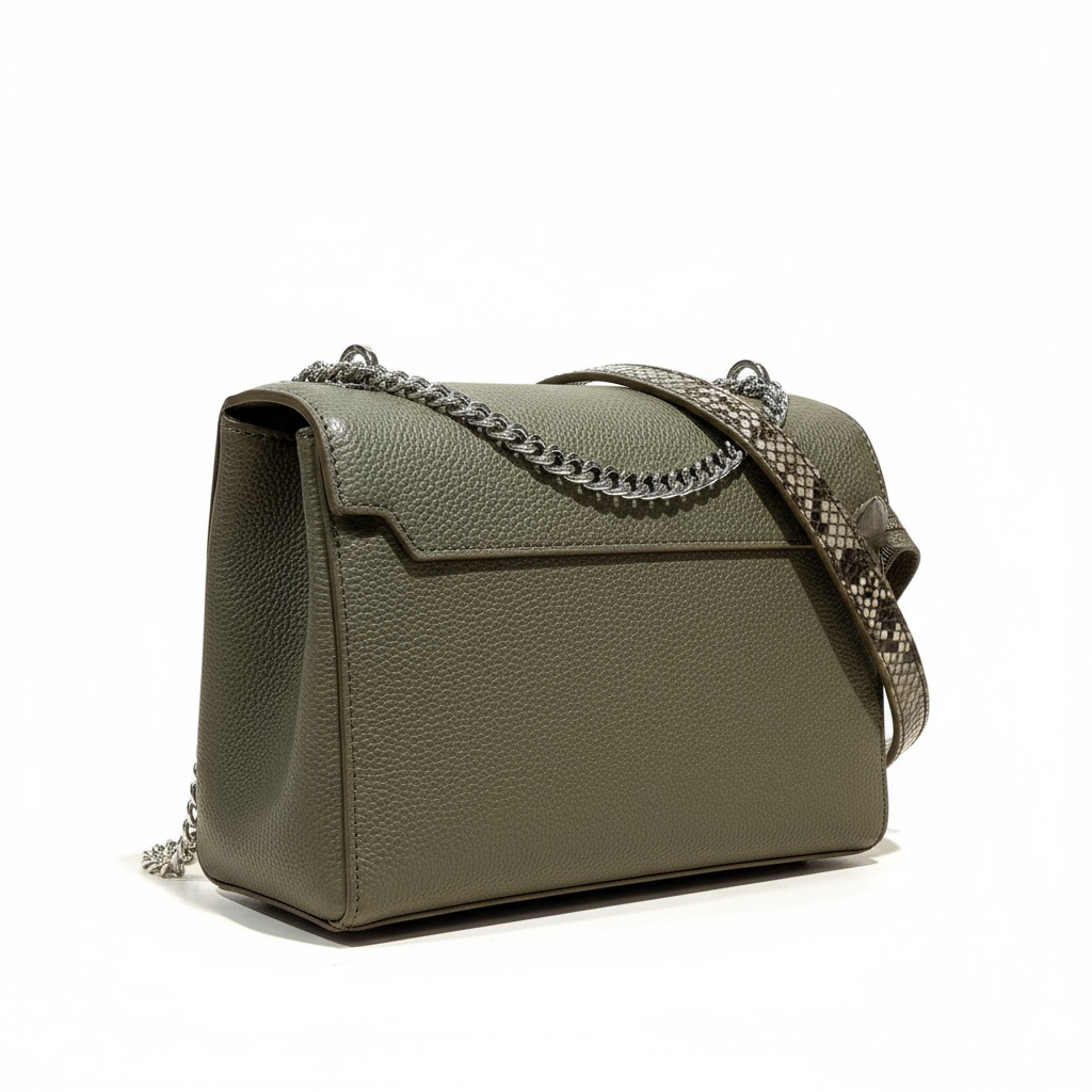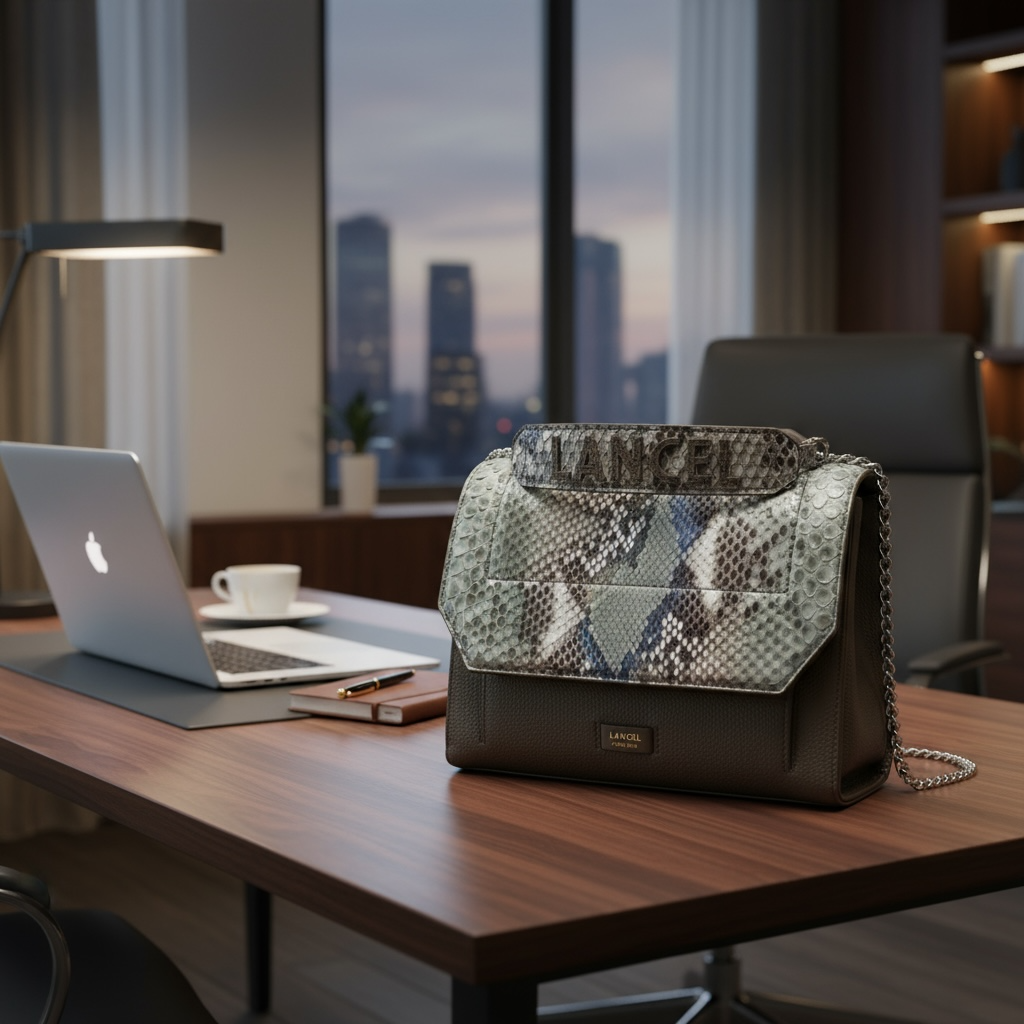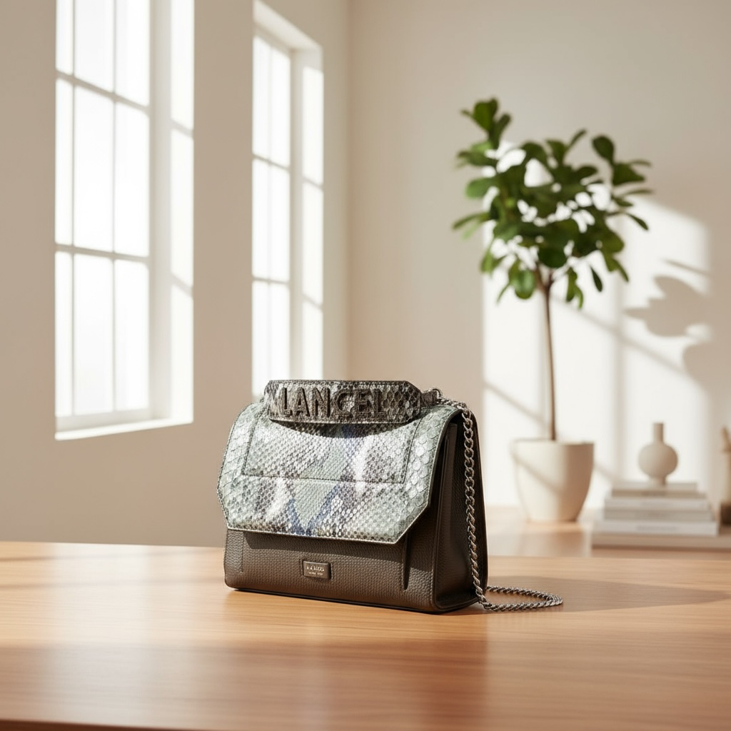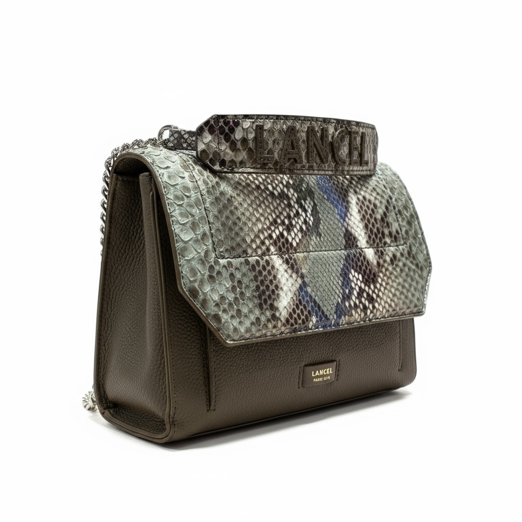 LANCEL - NINON - Sac rabat M - Python multicolore kaki